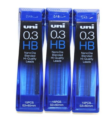 Strength & Deep & Smooth -Uni-ball Extra Fine Diamond Infused Pencil Leads, 0.3 Mm-hb-nano Dia 15 Leads X 3 Pack/total 45 Leads