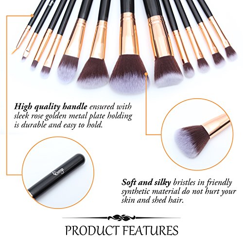 - ROSE GOLD WITH BLACK DESIGN: The makeup brushes set look so chic and fashionable in the most popular beautiful color (ROSE GOLD WITH BLACK), A must-have in your makeup collection, perfect as a gift for valentines day!