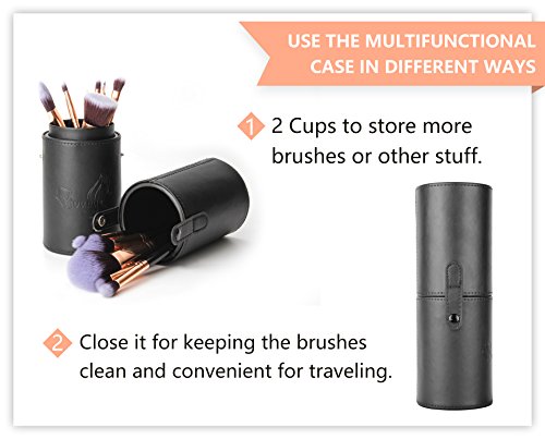 - COME WITH A MULTIFUNCTIONAL BRUSH HOLDER: Made of vegan PU leather, 2 cups snap together, a unique case design allows you open it and have the brushes standing, while enclosing it is ideal for keeping the brush set clean and perfect as well for a travel brush case.
