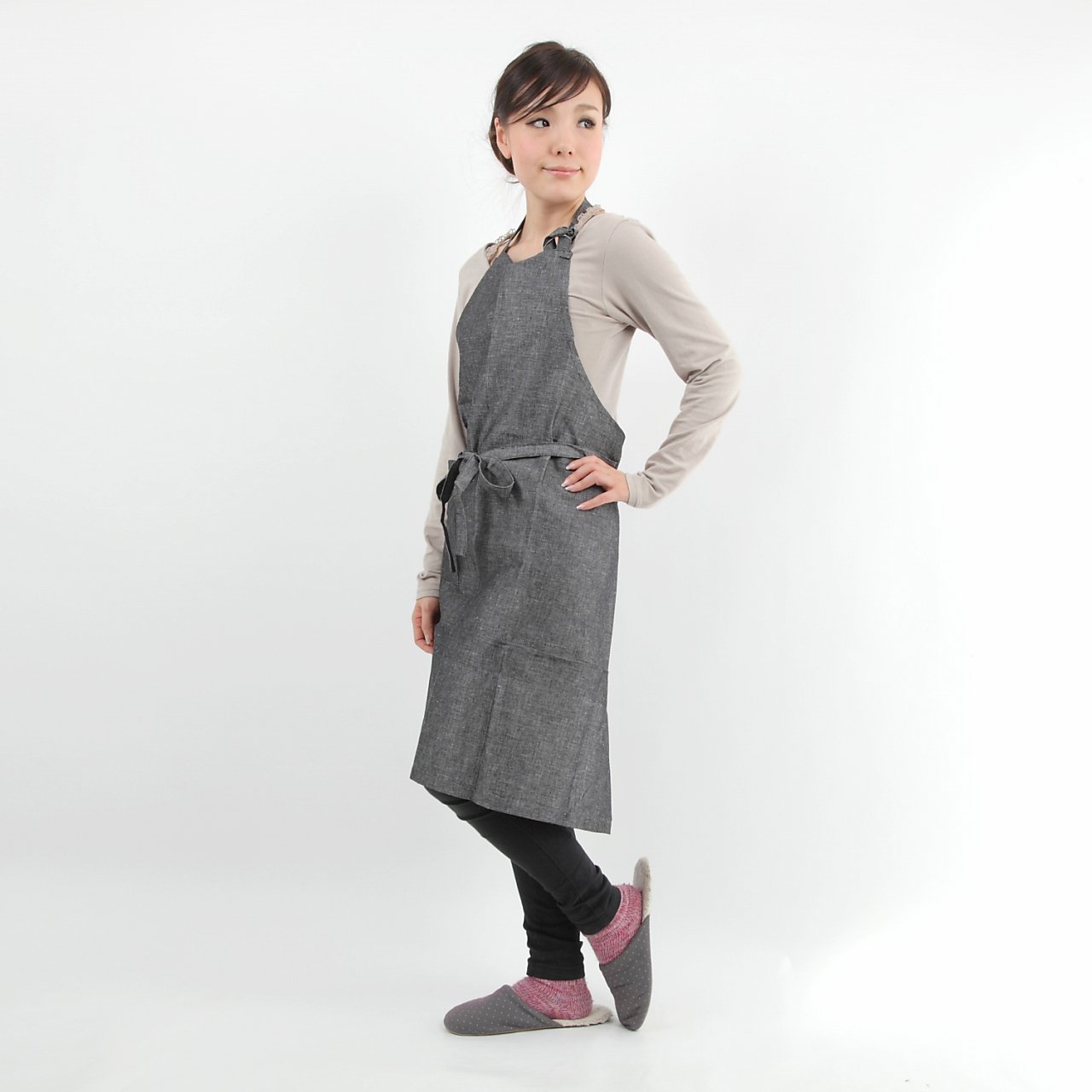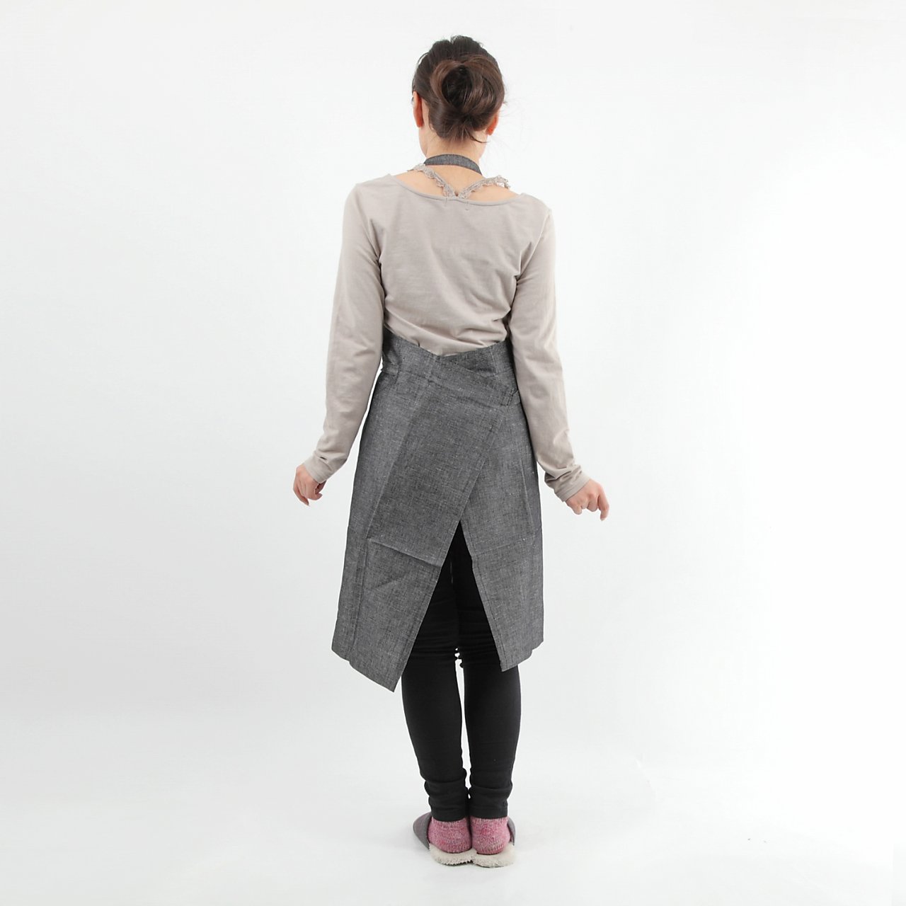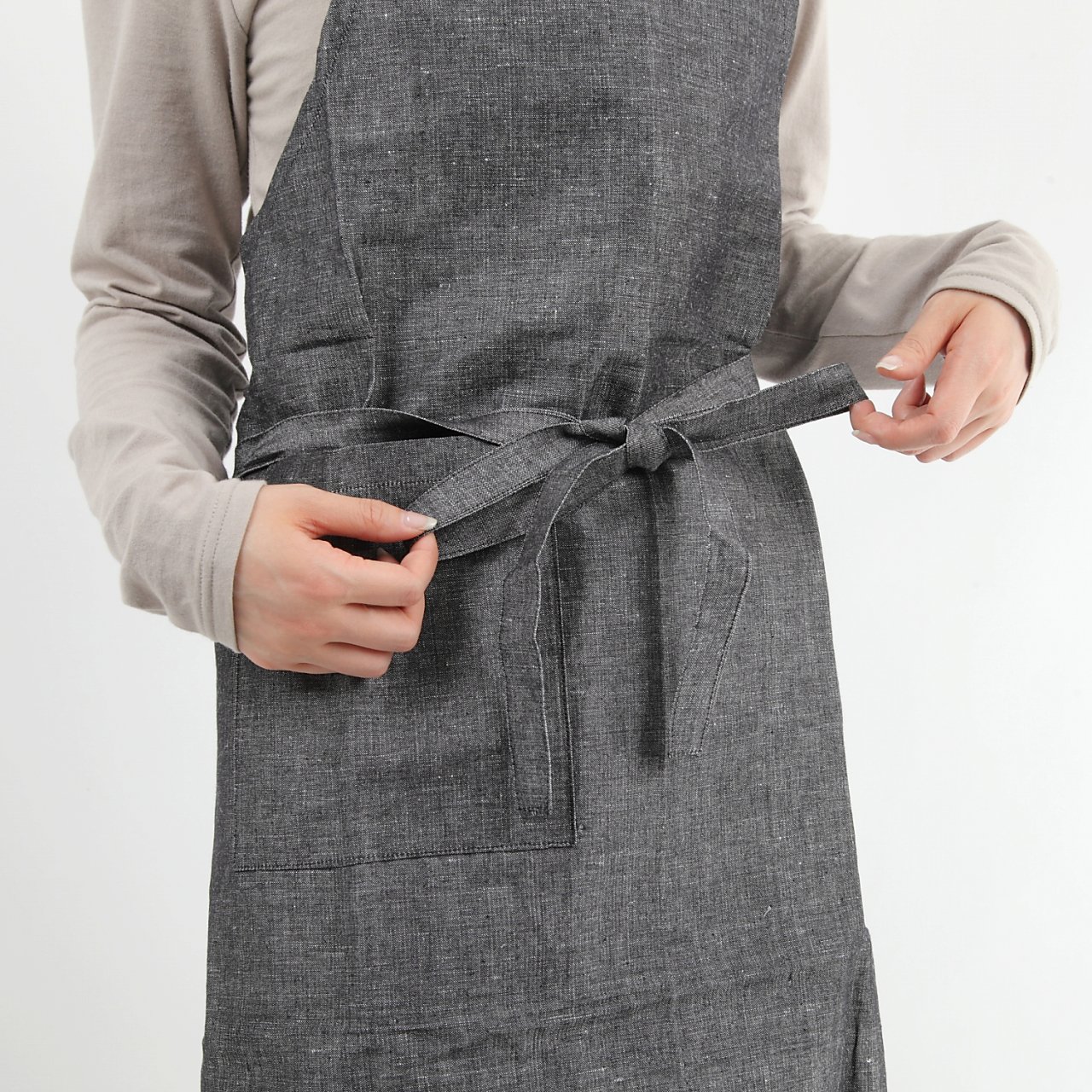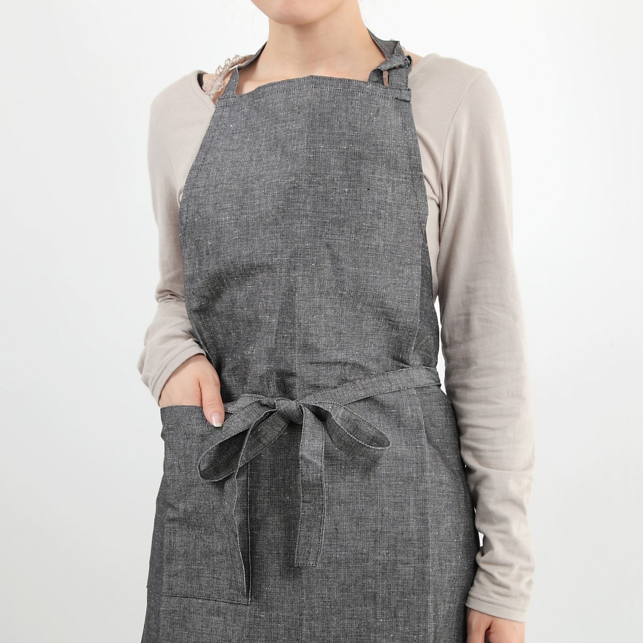 Cotton linen chambray cafe apron 87cm black