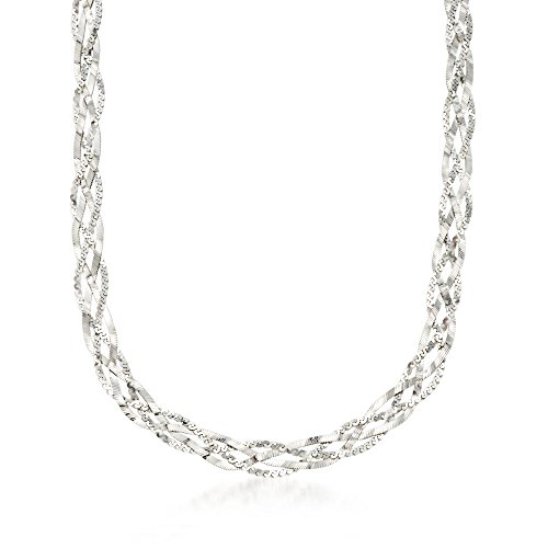 Ross-Simons specializes in high-end styles at exceptional values. Finely crafted by our Italian silversmiths, this necklace weaves a braid of two different sleek chains. Bright and sumptuous, it really shines on the neckline. 1/4" wide. Lobster clasp, sterling silver braided necklace. Each Ross-Simons item arrives in a fine jewelry presentation box. Shop Ross-Simons jewelry risk-free as all items include a 30-day, 100% money-back guarantee.Feature