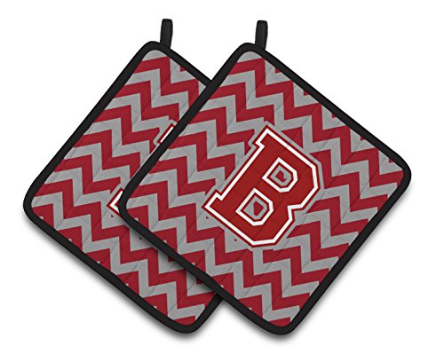 Caroline's Treasures Letter B Chevron Maroon & White Pair of Pot Holders CJ1049-BPTHD, 7.5HX7.5W, Multicolor