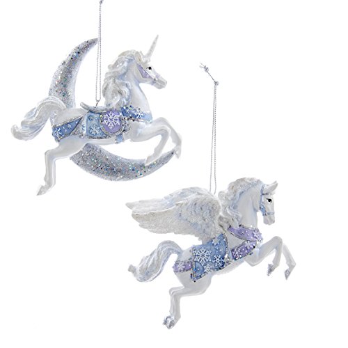 Kurt Adler Frosted Kingdom Unicorn/Pegasus ornament - set of 2 - C8904
