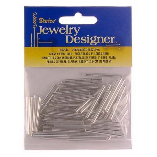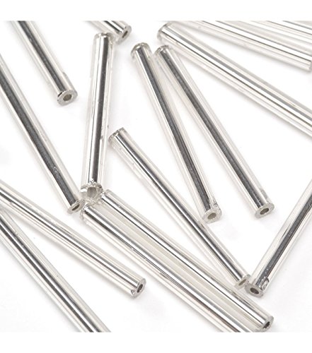 Glass Bugle Beads, 1 Inch Silver Lined, Silver (Pack of 1)