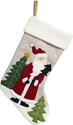 Santa Christmas Stocking with Fleece Cuff and Felt Applique - 18.5 Inches