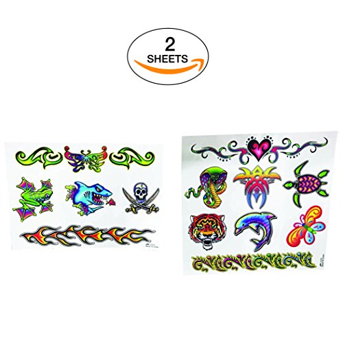 -. Feature : EASY TO APPLY - apply glitter tattoo design to arms, hands, faces, anywhere your girl wants to add a touch of GLITZ and GLAM / SUPER DURABLE AND EASY TO REMOVE - don't fade or come off until you take them off. / LOOKING FOR A GIFT ? - perfect party gift, pool parties, camping trips, rewards and more. / 2 SHEETS OF - assorted glitter temporary tattoos for girls. 19 pieces / NON TOXIC - these glitter tattoos for girls are environmentally friendly.