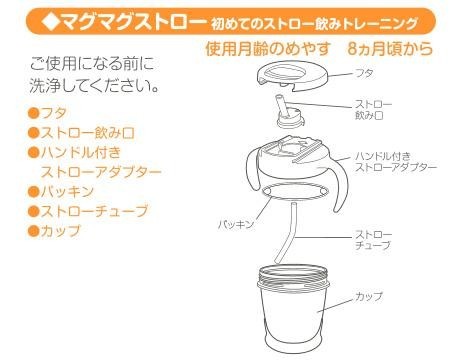 | 素材・材質 | カップ:ポリプロピレン・TPE ハンドル付ストローアダプター・フタ:ポリプロピレン ストロー飲み口・パッキン:シリコーンゴム ストローチューブ:ポリエチレン |