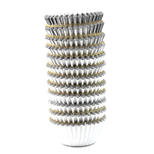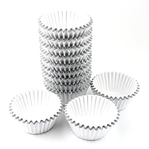 Eoonfirst Mini Foil Metallic Paper Cupcake Cup Liners / Baking Cups 300 Pcs (Silver)