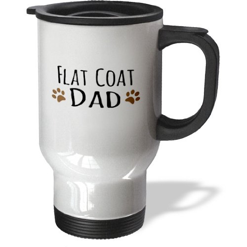 3dRose tm_153908_1 Flat Coat Dog Dad Flat Coated Retriever Doggie by Bread Brown Muddy Paw Prints Doggy Lover Stainless Steel Travel Mug, 14 oz, White