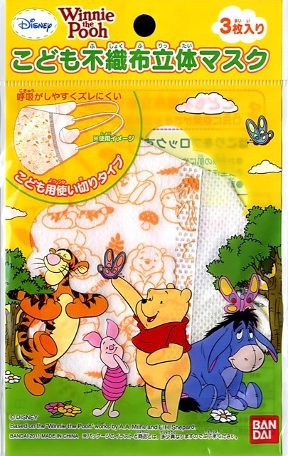 | 可愛らしいプーさんの子供用マスクです。呼吸がしやすくずれにくい、2つ折りの立体型マスクです。小顔な女性にもオススメです。 |