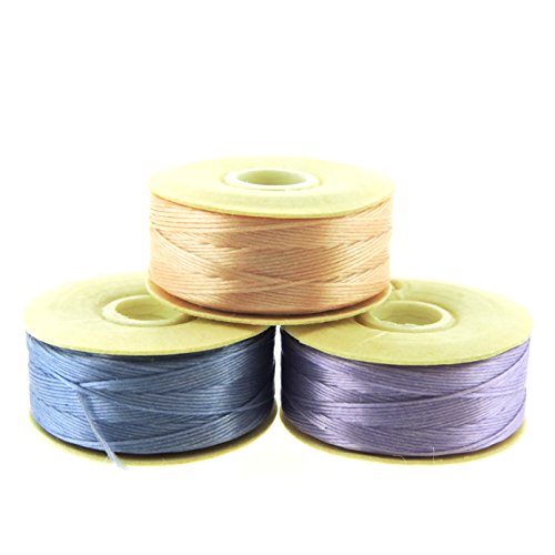 -. Title : NYMO Nylon Beading Thread Size D for Delica Beads, 64 Yards per Bobbin, Light Pink, Cathay Blue &, Lilac Purple (Pack of 3 bobbins)
