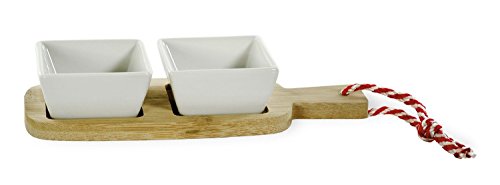 Boston International 3 Piece Small Bites Rectangle Board and Bowl Set, White