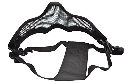 -. Feature : Materials, Green Environmental low carbon steel, Goggles: ABS (Acrylonitrile Butadiene Styrene) plastic / Metal Mesh Face Mask that Provides Superior protection for the face / Design of Double Strap and Wearing more stable,Fully Adjustable with Elastic Strap to fit most people (Kids and Adults) / Protective half face mesh mask Compatible with most eyes protection glasses / Perfect for war game, paintball, hunting and military purpose