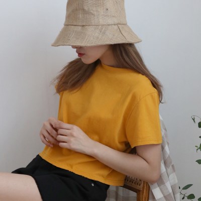 신축성 좋은 톡톡한 코튼 원단으로 제작되었으며 크롭 기장과 그에 맞춘 짧은 슬리브 기장으로 경쾌한 무드가 느껴집니다. 포인트 주기 좋은 톡톡 튀는 컬러로 구성되어있으며 부담스럽지 않은 밑단 데미지 디테일로 유니크하며 하이웨스트와 밸런스 있게 매치되는 제품입니다. 아이보리 컬러는 특성상 약간의 비침이 있을 수 있습니다.