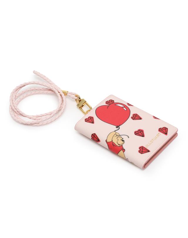 질스튜어트 고유의 귀여운 쁘띠 다이아몬드 패턴과 디즈니 푸우 캐릭터로 포인트를 준 귀여운 디자인의 목걸이형 카드지갑입니다.