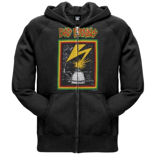 Product Description Cover art from the Bad Brains debut album is printed on this black 100% cotton zip hoodie with side pockets and banded wrists and hem to keep fans warm and hip. 0