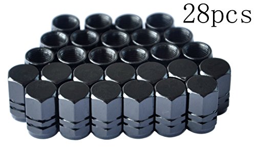 Cutequeen 28pcs Black Aluminum Tire Rim Wheel Valve Stem Caps - Black Color