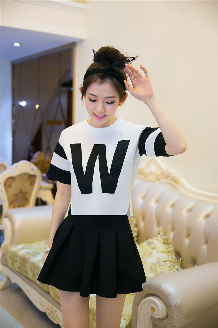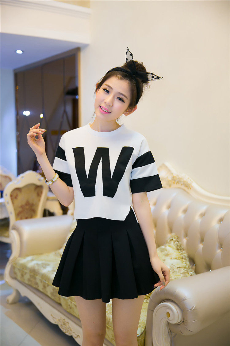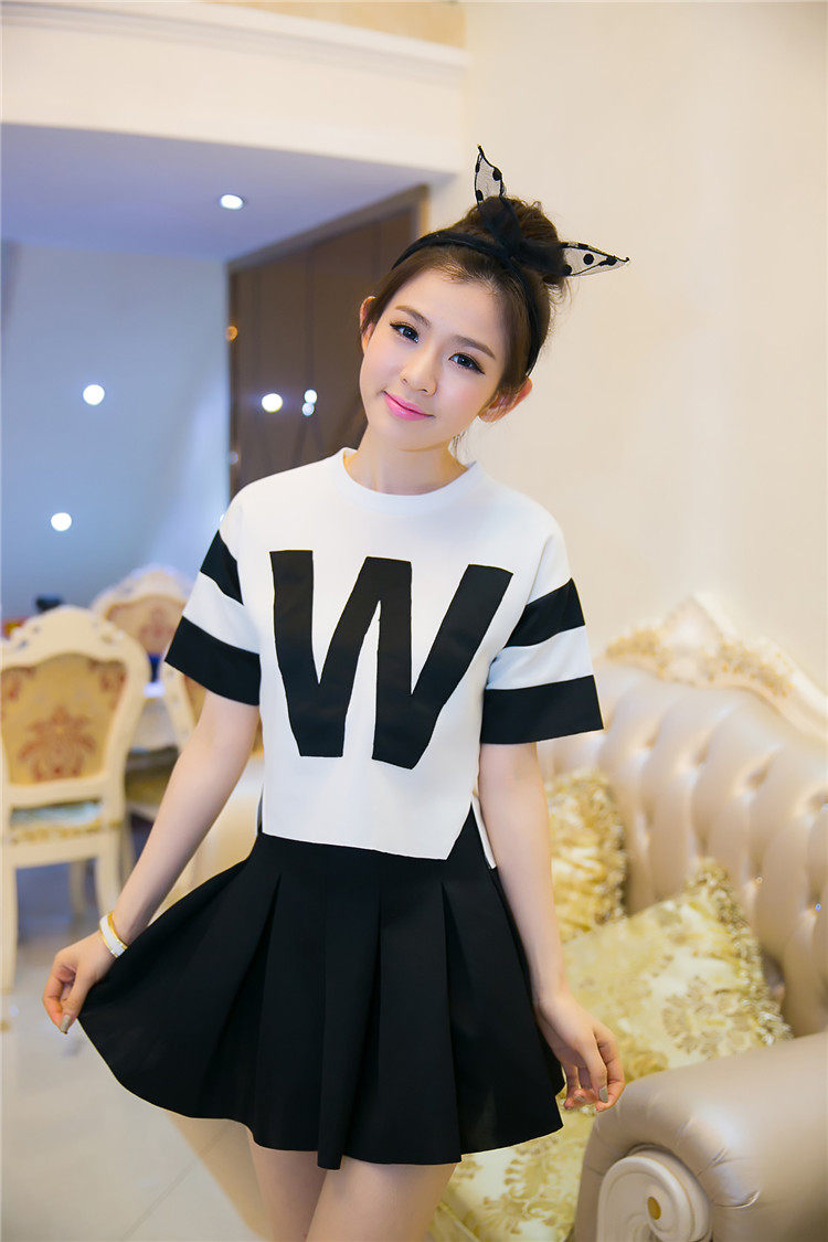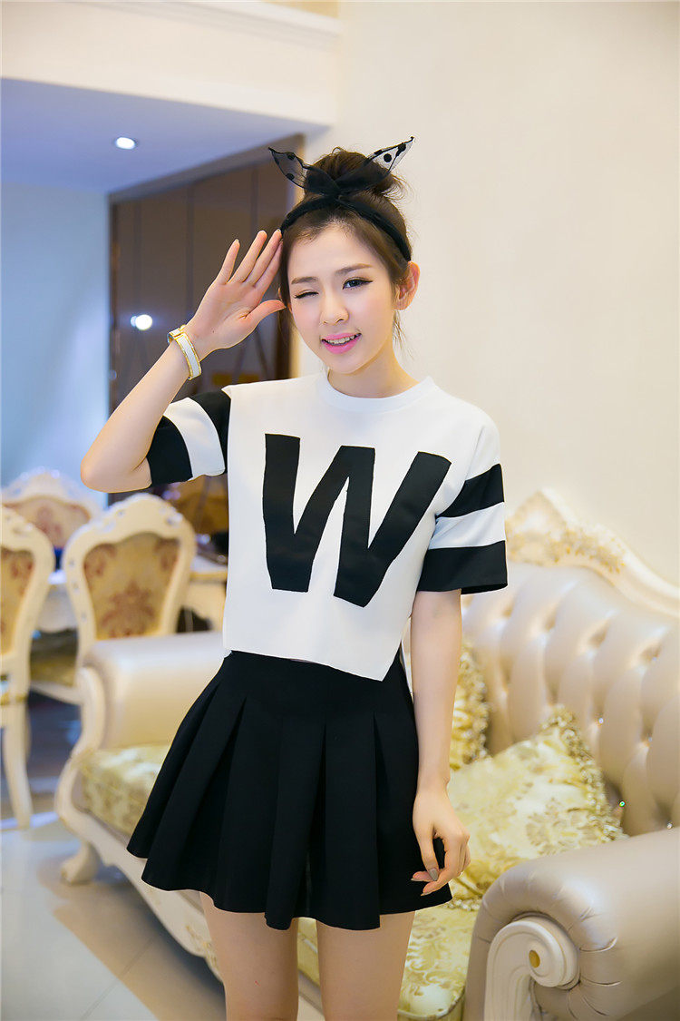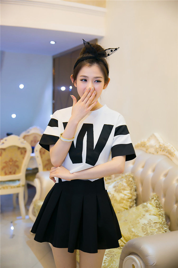Style: Commuter Commuter: Retro Combinations: two-piece Skirt Length: short skirts Style: Other / other Sleeve: fifth of the sleeve Collar: Round neck Sleeve type: Waist type: waist Clothing placket: Hedging Skirt type: pleated skirt Pattern: letter Brand: after 00 Fabric: Other Component content: 51% (inclusive) -70% (inclusive) Material: Leather Age: 25-29 years of age Year season: Spring 2014 Color Classification: Skirt + shirt (quality version) shirt skirt + (Normal Edition) Size: S, M, L, XL