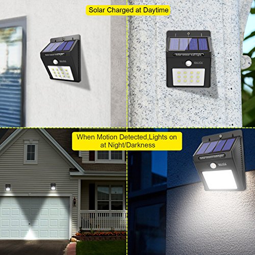 BAXIA TECHNOLOGY Solar Lights Outdoor, Wireless Waterproof Solar Motion Sensor Security Light for Garden,Yard,Fence,Pathyway,Outside Wall[12 Leds,4 Packs]