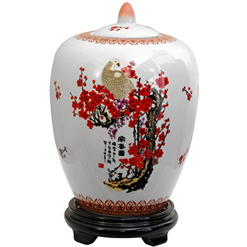 Oriental Furniture 11" Cherry Blossom Porcelain Vase Jar
