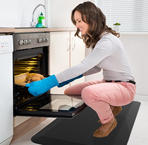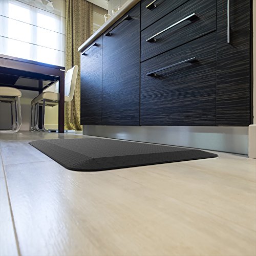 ANTI-FATIGUE - Our floor mats effectively relieve upto 40% pressure on your knees, feet and delicate joints in the legs. Whether youre standing in the kitchen for an hour cooking up your family dinner, or youre at your standing office desk working on your masterpiece, you will feel as if you're on a cloud. Less fatigue = Better Quality work!