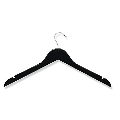 -. Feature : Pack of 5 wood hangers for blouses, shirts, dresses, and coats / Made from durable hardwood with a black finish / Grooved hooks for dresses and garments with straps; smooth contoured design keeps garment wrinkle-free / Sturdy hanging hook with polished chrome finish and 360-degree swivel design / Features notches on frame to keep garments with straps hanging perfectly