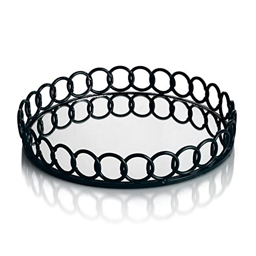 American Atelier Looped Round Mirror Tray, Diameter 15-Inch, Black