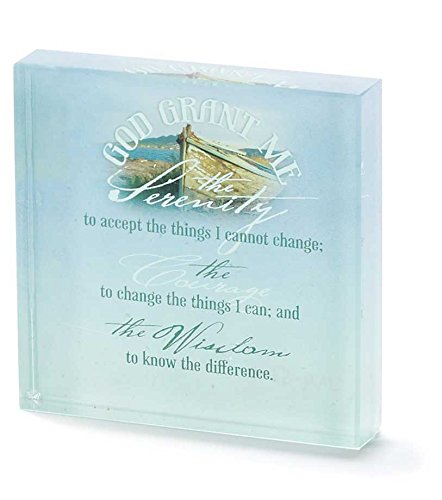 - A rowboat and lake motif beautifully compliments the famous Serenity Prayer on this elegant glass tabletop plaque