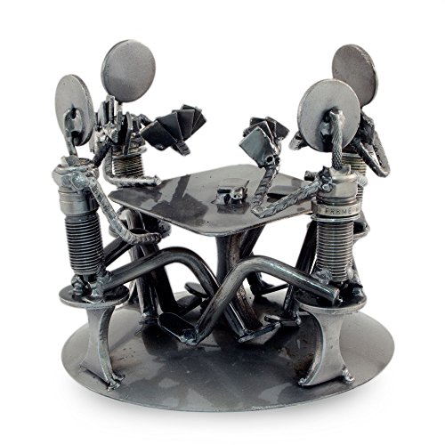 NOVICA Metallic Handcrafted Recycled Metal Auto Part Sculpture, 'Rustic Poker Game'