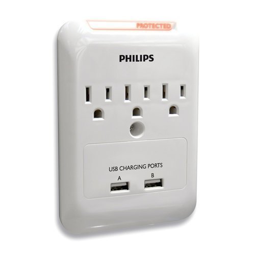 Philips SPP3038B/17 Home Electronics 3 Outlet Surge Protector for Android and Smartphone Devices