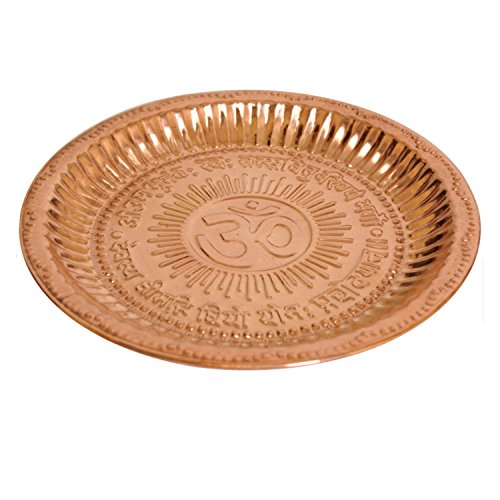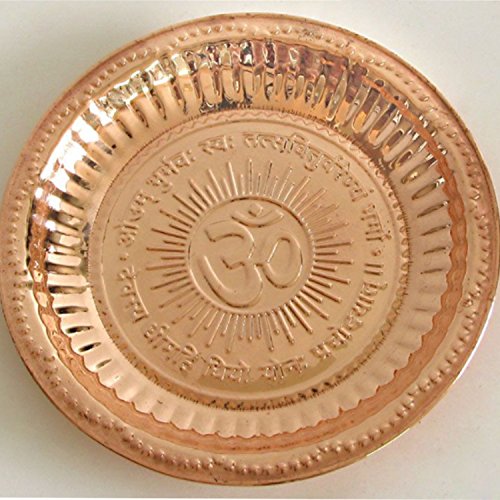 Handmade Copper Hindu Puja Thali with Om Symbol and Gayatri Mantra - Decoration - Mandir Temple Accessory - Spiritual Gifts BIG
