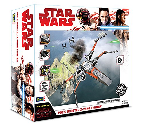 -. Binding : Toy -. Brand : Revell -. EAN : 0031445016714 -. Feature : Fire up the engines and get ready to go on a mission to defeat the dark side with Poe's boosted X-Wing fighter from Star Wars: the last Jedi! / This kit includes 21 easy snap together pieces that provides maximum detail and durability. / No tools, paint or glue needed for assembly. / This product is packed with new features that include a battle ready pilot and all new battle action sounds ranging from blaster gun fire and bb-9 Droid sound effects. / The final results speak for themselves: authentic models that capture all the detail and nuance of the vehicles as they appear on the silver screen. -. IsAdultProduct : 0 -. Label : Revell -. Manufacturer : Revell -. Model : 85-1671 -. MPN : 85-1671 -. NumberOfItems : 21 -. PackageQuantity : 1 -. PartNumber : 85-1671 -. ProductGroup : Hobby -. ProductTypeName : TOYS_AND_GAMES -. Publisher : Revell -. ReleaseDate : 2017-09-30 -. Studio : Revell -. Title : Revell Build and Play Star Wars: The Last Jedi Poe’s Boosted X-wing Fighter -. UPC : 031445016714 -. Warranty : 30 day warranty against manufacturer defects