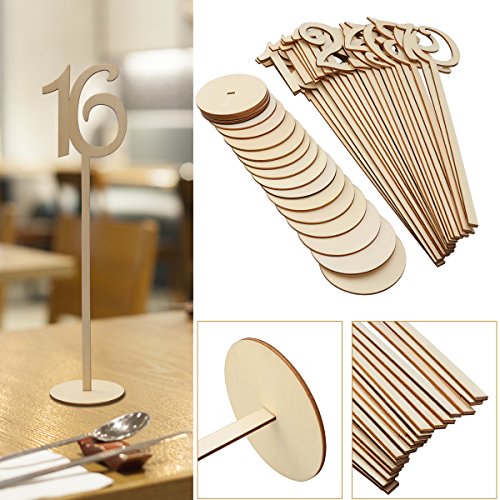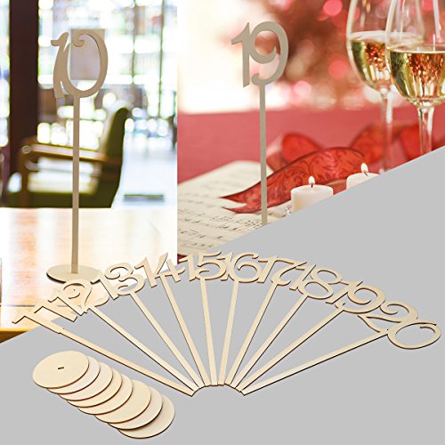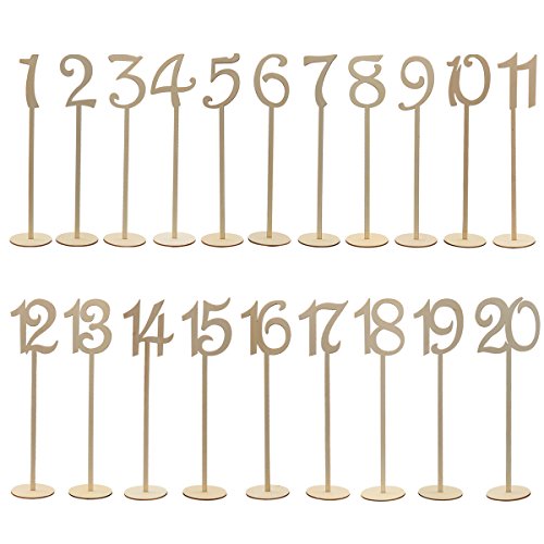 OULII Wooden Table Numbers with Holder Base for Wedding or Home Decoration, 1 to 20, Pack of 20