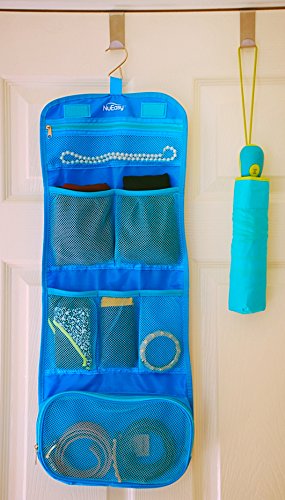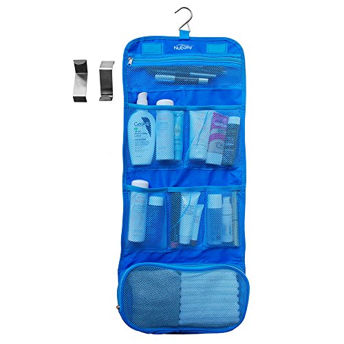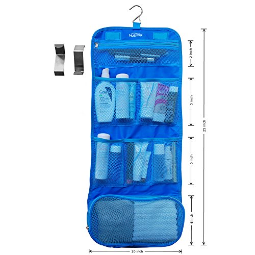 Hanging Organizer Bag for Cosmetics Makeups Toiletry Grooming and Jewelries Storage - Two Free Bonus Over the Door Stainless Steel Hooks - Great for...