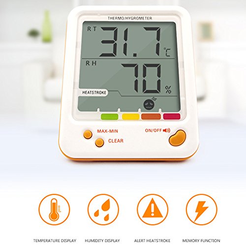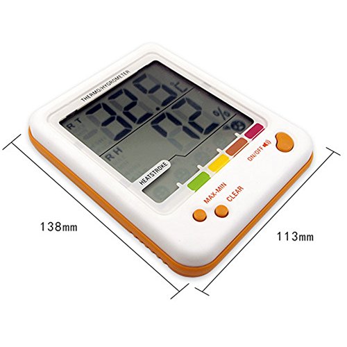 -. Brand : Trista99 -. Color : White -. EAN : 8729475992451 -. Feature : Thermometer and hygrometer shows the temperature and humidity. You can switch "MAX/MIN" to current temperature and humidity. And you can set an alarm to keep your family from heat stroke / A large digital LCD screen makes it easy to read the information you need. / CLEAR Function can clear MAX&MIN temperature & humidity memory / Climate Alert for the outdoor & Temperature and humidity alarm for your indoor, a good helper for your family. / Easy Operation -. Label : Trista99 -. Manufacturer : Trista99 -. ProductGroup : Lawn & Patio -. ProductTypeName : OUTDOOR_LIVING -. Publisher : Trista99 -. Studio : Trista99 -. Title : Trista99 Automatic Heatstroke Alarm Function thermo hygrometer digital temperature humidity monitor for Indoor and Outdoor, LCD Display