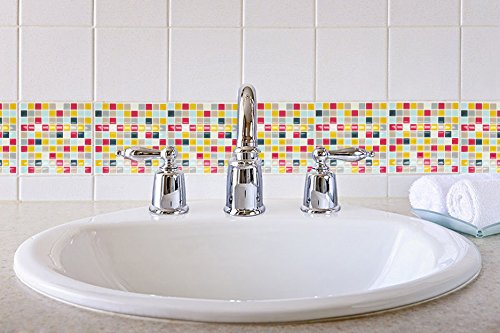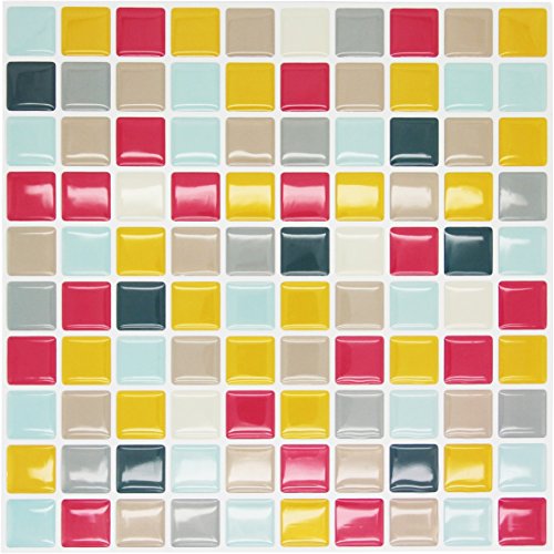 Bepont Mini Mosaic Backsplash Tile self-adhesive tickers 10 x 10 inch Each,2 pc set,Fire Retardant 3D wall sticker for Kitchen and Bathroom Home Decor (Yellow)