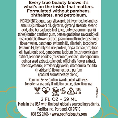 Pacifica Wake Up Beautiful Mask makes sure that you don't waste a minute! Supercharge your sleep with this creamy overnight mask that helps quench thirsty, stressed, sun damaged skin and supports the supple, dewy appearance of youth. Essential lipids, antioxidants and natural extracts help revive and re-hydrate. This no-rinse, non-greasy, non-sticky formula leaves skin visibly improved while the aroma therapeutic benefits aid in relaxation. For dry and combination skin types. 100% vegan and cruelty-free.Feature