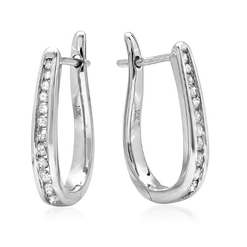 - Title : 10K White Gold Flip Back Diamond Hoop Earrings ( 1/4ct tw)