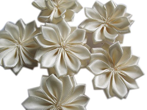 YYCRAFT Pack Of 30 Satin 1.5" Ribbon Flower Appliques-Ivory