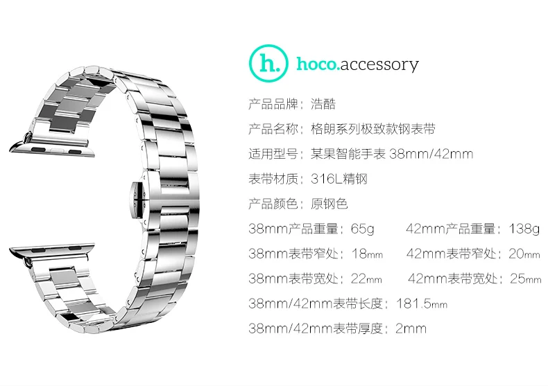| [해외] 원래 HOCO 나비 버클 울트라 얇은 스테인레스 스틸 스트랩 시리즈 2 시계 밴드 애플 시계 iWatch 첫번째 2nd 42/38 미리메터 |