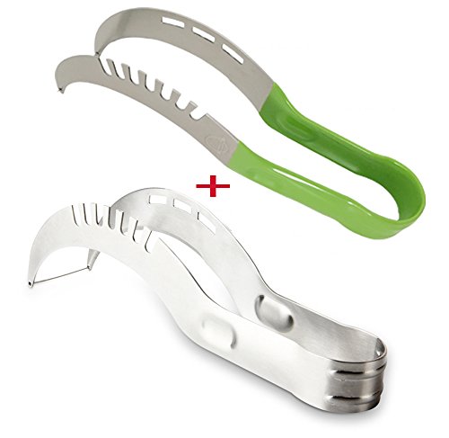 Kingware Home Watermelon Slicer, 2 in 1 Perfect Melon Knife and Cutter Tongs, Stainless Steel Watermelon Service(set of 2)