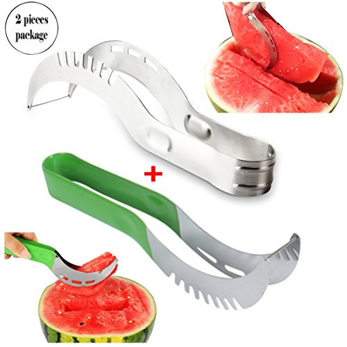 Set of 2 Watermelon Slicers - One piece Stainless Seel with PVC Handle and Another One Whole in Stainless Steel