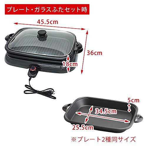 평면 플레이트와 야키니쿠(한국식 갈비) 플레이트,2매에 구별지어 처리되는 핫 플레이트입니다.온도 조절 다이얼 부착,퓨즈 내장.