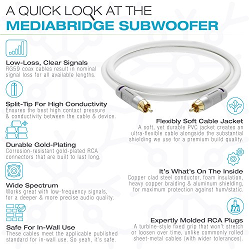 Mediabridge ULTRA Series Subwoofer Cable (15 Feet) - Dual Shielded with Gold Plated RCA to RCA Connectors - White - (Part# CJ15-6WR-G1 )