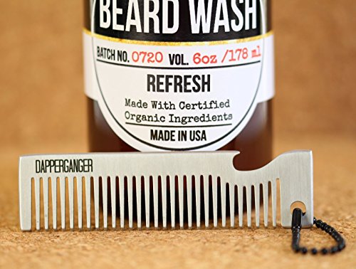 UNIQUE SCIENTIFICALLY CREATED REFRESHING LIGHT SCENT CUSTOM CUSTOM DESIGNED TO BE FRESH, DELICIOUS AND NOT OVERPOWERING. This Beard Gifts includes Canvas and Vegan Leather Dopp Bag or Men Travel Toiletry Bag with Stainless Steel Beard Comb Bottle Opener & Stainless Steel Grooming Scissors