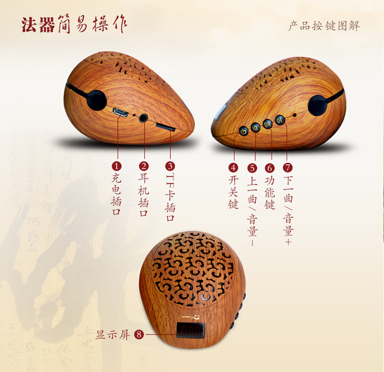 包装配件:包装盒+带绳念佛机+充电器莲USB线+曲目单