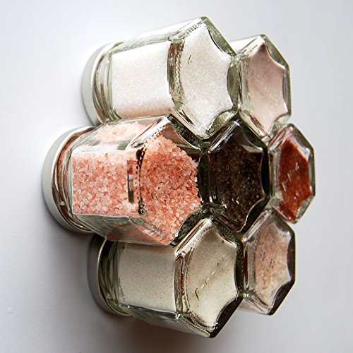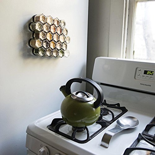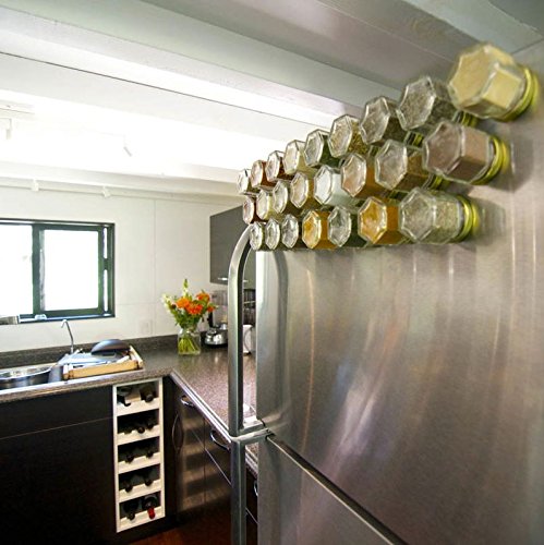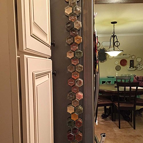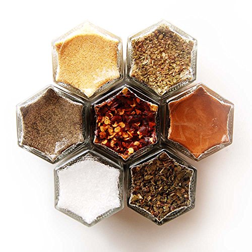 -. Feature : Have a fridge? Then you have a spice rack! Clever kit includes certified organic herbs and spices in magnetic hexagon jars. Best quality spices, guaranteed. Organize your kitchen, save space and improve your cooking with gourmet fresh spices. Decorative kitchen art, this attractive set will be the conversation piece in your home. / Durable glass jars are airtight and will last longer than metal tins. Small bottles measure 1.75 x 2 inches, 1/4 cup volume (larger 4oz jar available). Internal food-safe stainless steel barrier between magnets and spices. Your choice of silver, gold or black lids, all labeled with names. No sifter caps. / Strong magnets keep jars from sliding; they stick to the swinging refrigerator door! Add a wall plate and display containers on backsplash, mount above stove or over counter, attach to side of cupboard, under shelves or even inside cabinets or drawers. Hanging spice racks are a great space saver for compact kitchens and small apartments. / Unique wedding, housewarming or graduation gift idea. Perfect for the foodie, chef or cook. Best selling present for tiny homes, RVs and houseboats. Reusable bottles are eco-friendly. Themed kits come with descriptoins and spice use recommendations. / Gneiss Spice magnetic jars are created in our Maine studio from materials sourced in the USA and abroad. We specialize in custom kits personalized to your pantry from our collection of over 180+ organic seasonings. Need a different quantity? Contact us for more details or to add extra empty jars to your pack.