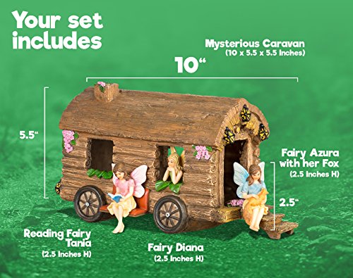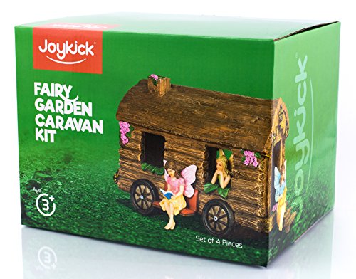 Joykick Fairy Garden Caravan Kit - Miniature Hand Painted Figurine Statues with Accessories - Set of 4pcs for Your House or Lawn Decor