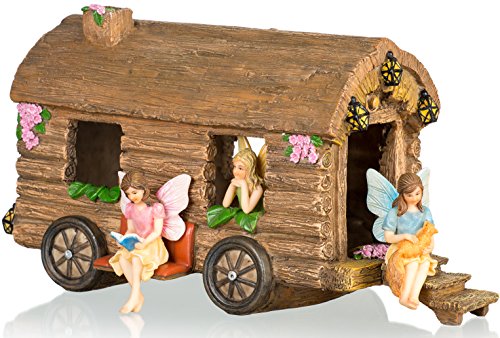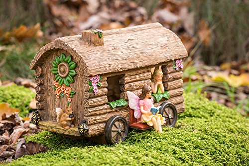 CUTE FAIRY GETAWAY -- The Fairy Garden Caravan comes with 3 windows, 2 seats and detachable stairs so you can arrange your fairies however you want. Whatever their mood that day, let your enchanted friends express themselves.