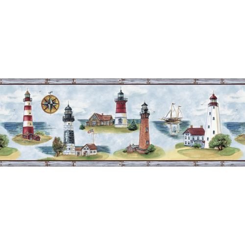 -. Title : Brewster FFR65451B Blue Lighthouses Of America Border Wallpaper,